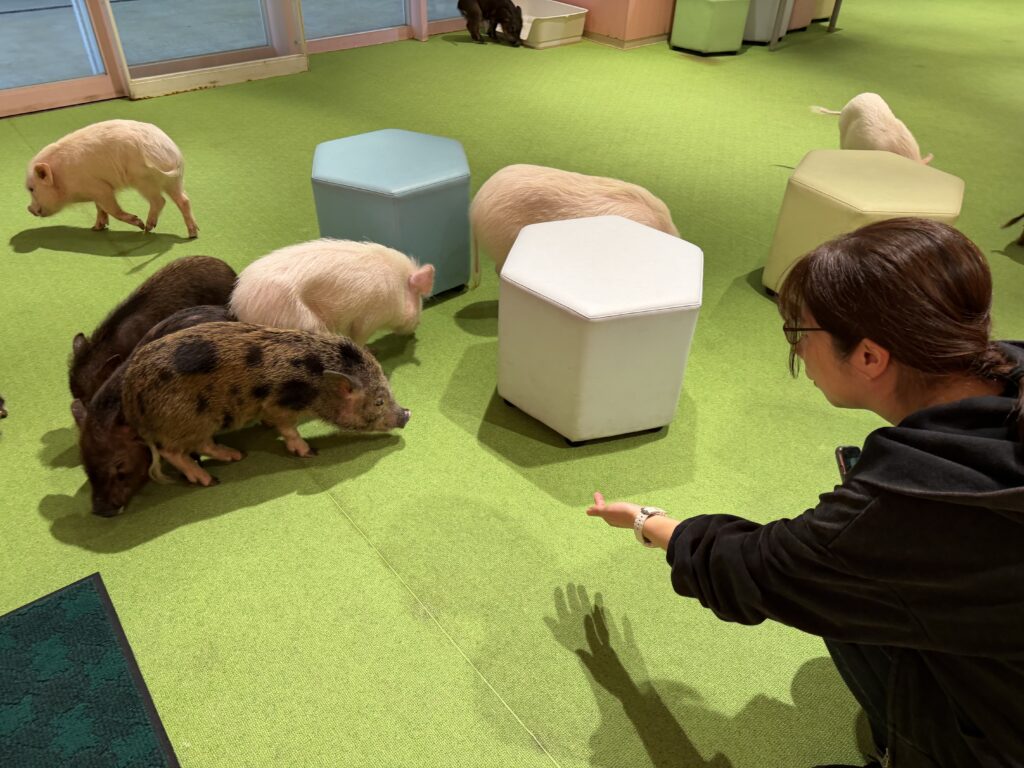 水族館ですが、なぜか、子豚さんと戯れることが出来るコーナーもありました。